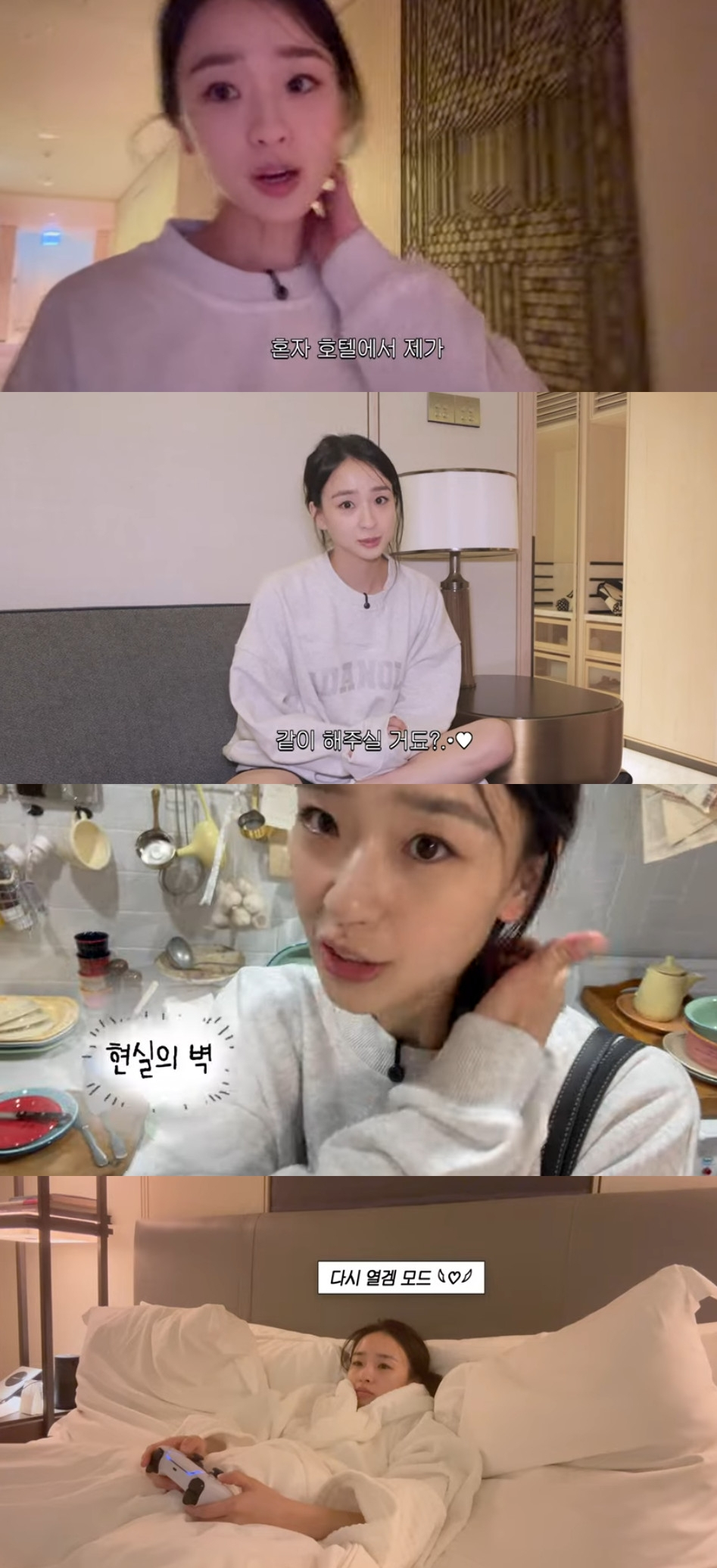 이어 호텔로 돌아온 그는 본격적인 게임에 나섰고, "이틀 만에 게임을 깼다. 게임을 오래 하기 전에 룸서비스를 시키려고 한다. 저는 집 밖만 나오면 배고프다. 랍스타와 치킨도 먹겠다. 마저 게임을 해보겠다"면서 열심히 게임을 하던 그는 새벽 1시에 잠들었다. 다음 날 "다시 육아에 복귀한다. 남편이 데리러 와줬다. 빨리 아들이 보고 싶어서 안 되겠다. 호캉스 즐거웠다"고 말했다.