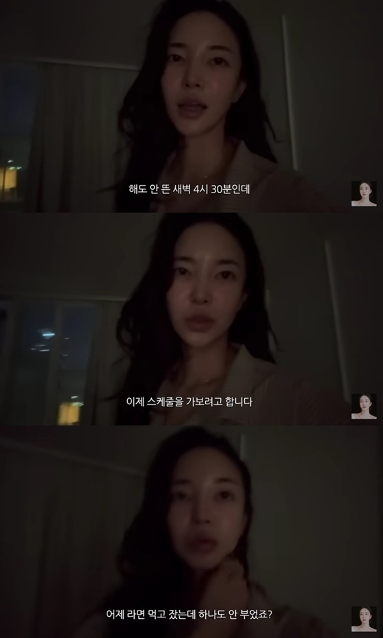 다음 날 김윤지는 "해도 안 뜬 새벽 4시 30분인데 이제 스케줄을 가보려 한다. 어제 라면 먹고 잤는데 하나도 안 붓지 않았냐"며 여전히 날렵한 턱선을 자랑했다.