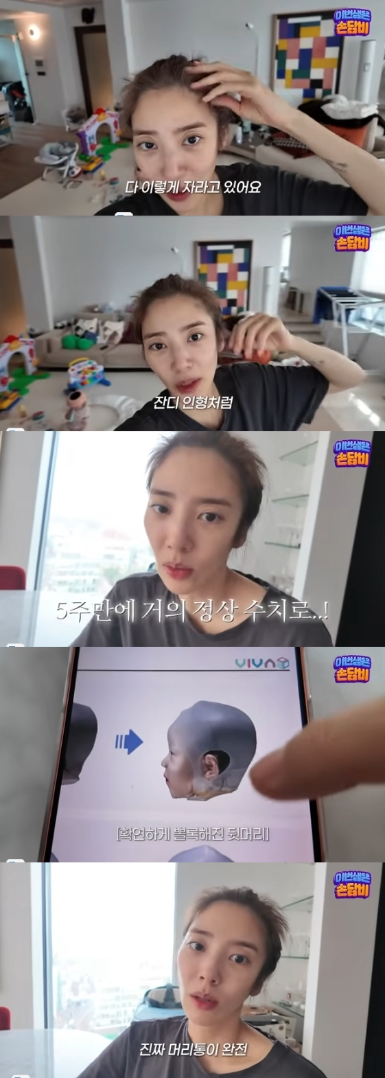 가수 손담비가 딸 헤이 양의 두상 교정 근황을 전했다. 12일 공개된 유튜브 채널 '담비손 DambiXon'에는 '보행기 첫 탑승! 인생 8개월 차 최대 고민 아빠 vs 엄마, 선택의 순간'이라는 제목의 동영상이 게재됐다.