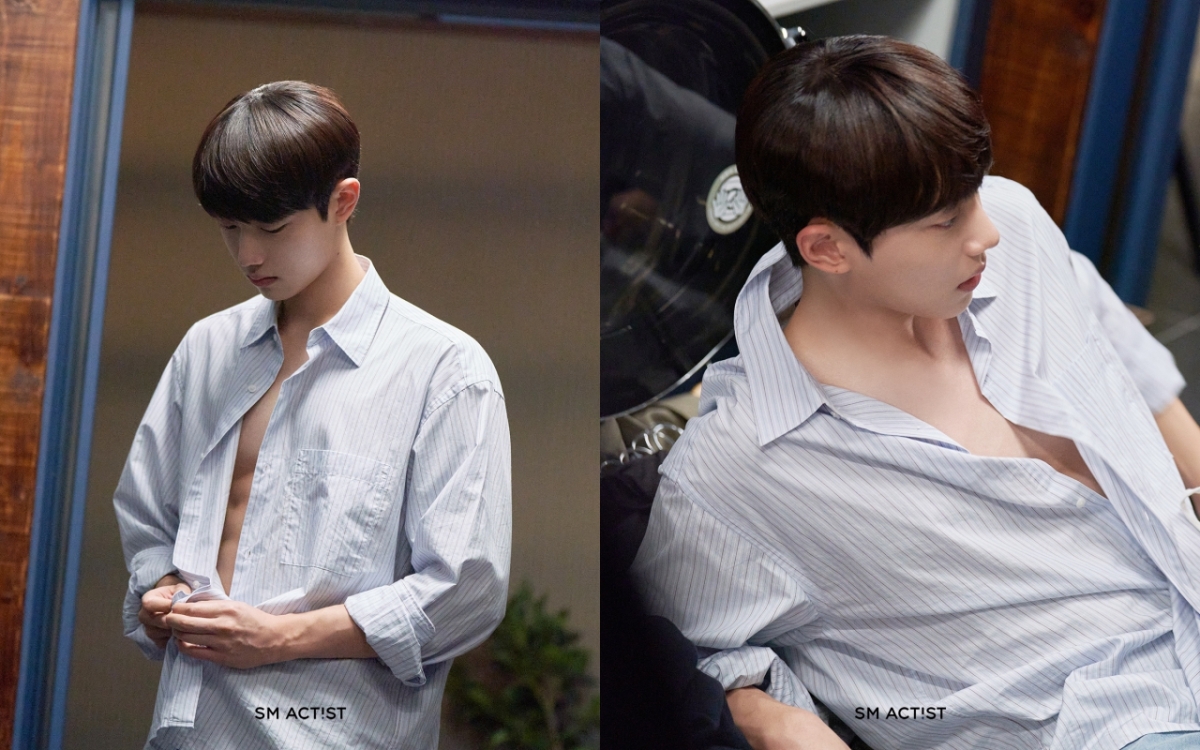 공개된 사진에서 조준영은 옷을 갈아입던 중 뜻밖의 순간을 들키게 되어 놀란 표정이 생생하게 담겼으며, 평소 단정한 이미지와는 상반된 선명한 복근과 탄탄한 몸 선으로 색다른 매력을 선사해 시선을 사로잡는다.