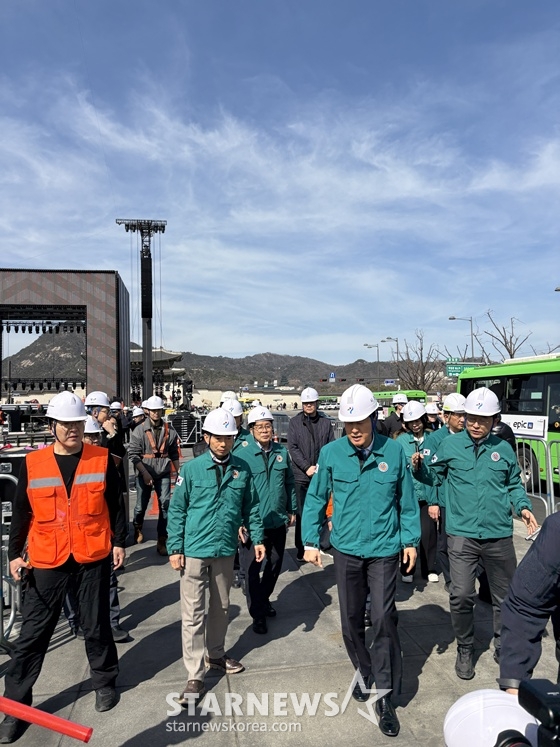 "방탄소년단(BTS) 광화문광장 공연, 안전에 만전을 기하고 있다." (오세훈 서울시장)19일 오후 서울 종로구 광화문광장 일대와 세종문화회관 옥상에선 방탄소년단(BTS) 컴백 공연 관련, 서울시 측의 현장 점검이 실시됐다. 오세훈 서울시장을 비롯해 관계기관 책임자 등이 참석했다.