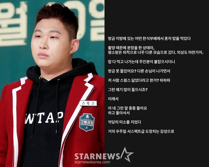 Learn more무정자증 루머에 입 연 스윙스..뷔페서 정체 숨기고 의미심장 미소 [스타이슈]