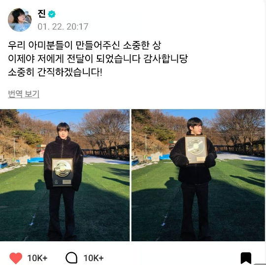 Learn more“A True Lover of His Fans” — BTS’s Jin Thanks ARMY for a Precious Award