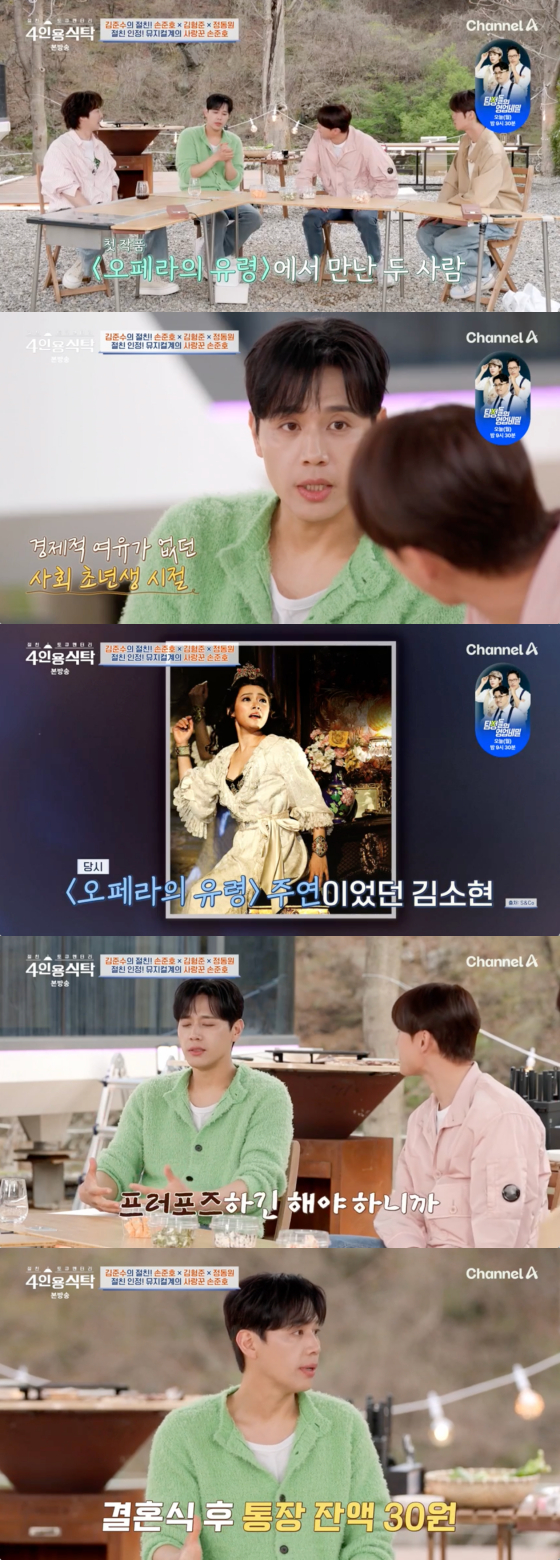 이날 손준호는 "내가 2010년 뮤지컬 데뷔 직후 김소현과 결혼했다. 경제적으로 김소현과 차이가 정말 많이 났다"고 말문을 열었다.