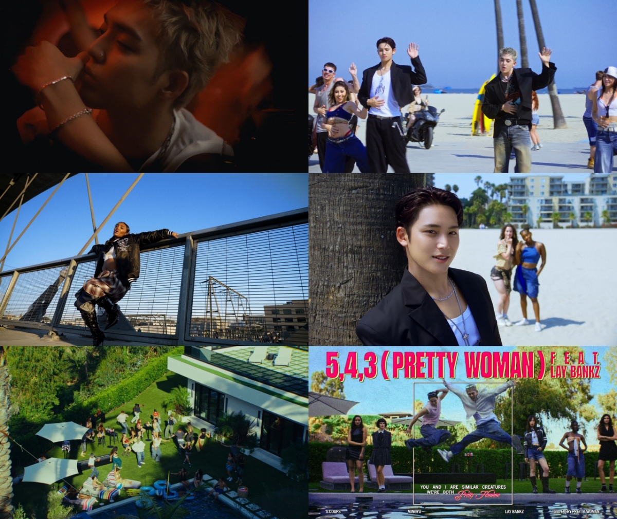 모든 'Pretty woman'의 시선을 사로잡는 에스쿱스X민규의 쿨하고 자유분방한 매력 또한 관전 포인트다. 화려한 클럽부터 길거리, 옷가게, 하우스 파티에서까지 주변 사람들의 눈길은 두 사람에게 쏠린다. 뮤직비디오는 여성들의 시점을 중심으로 에스쿱스X민규를 조명해 설렘을 배가한다. 여기에 미국 로스앤젤레스(LA)의 청량한 풍경은 보는 재미를 더한다.