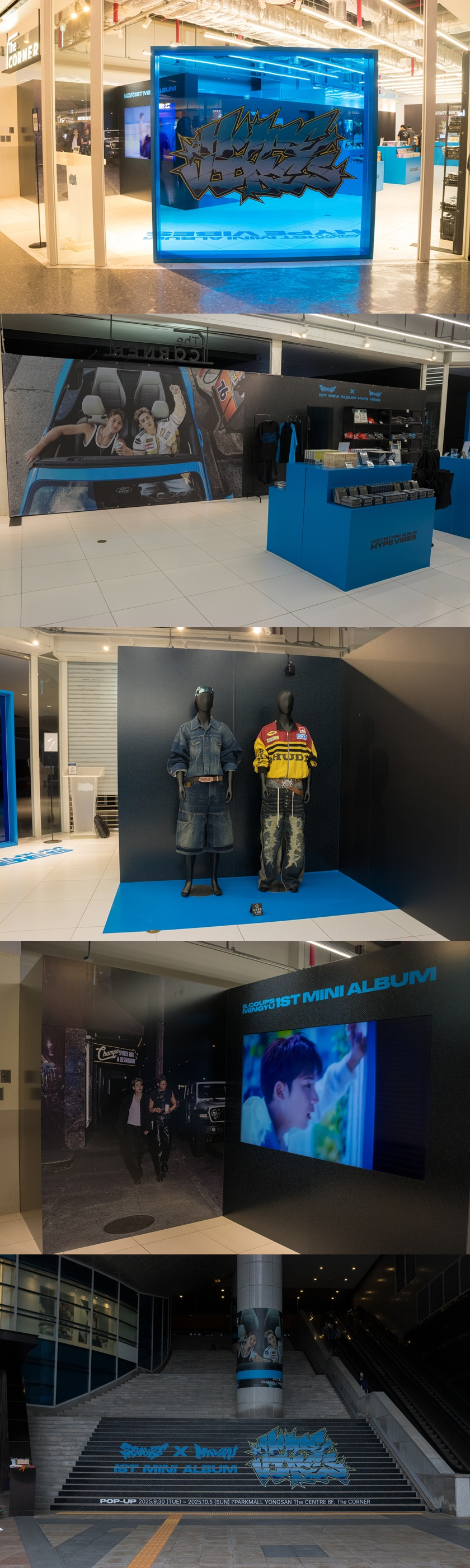 팝업은 'HYPE VIBES'의 자유롭고 뜨거운 분위기를 생생하게 느낄 수 있도록 구성됐다. 먼저 미니 1집 실물 음반을 비롯해 의류, 액세서리, 스티커 등 다양한 앨범 머치가 판매되고 있다. 또한 에스쿱스X민규가 타이틀곡 뮤직비디오에서 착용한 의상이 전시돼 방문객들에게 몰입감 높은 경험을 선사한다.