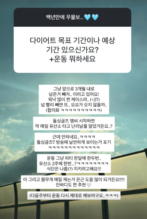 이다은은 30일 자신의 현재 몸무게를 공개하고 "얼마만에 보는 56인지(물론 57에 가깝지만 ㅋㅋ) 55로 가즈아"라고 적었다.