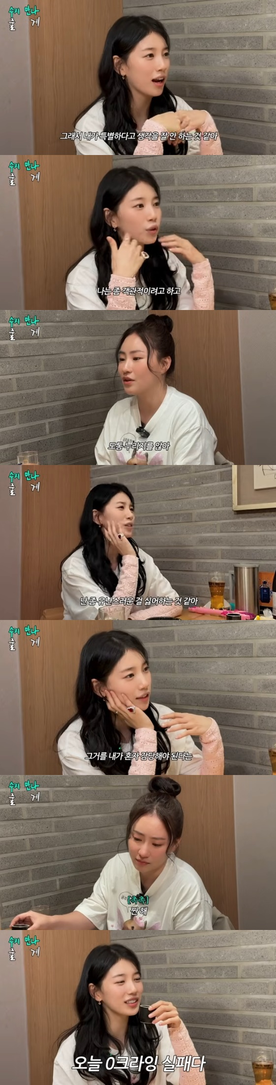 이를 본 수지는 "오늘 0크라잉 실패다"라고 지적해 웃음을 안겼다.