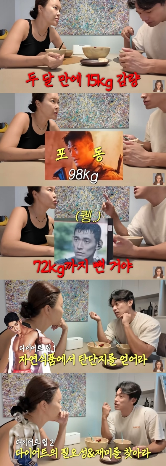 그런가 하면 정석원은 영화 캐릭터를 위해 단기간에 15kg을 감량했다고 밝혀 시선을 모았다. 백지영은 "정확하기 기억하는데 두 달만이다. 처음 시작할 때 98kg이었다. 그때 너무 벌크였다"라고 떠올렸다.