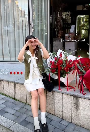 사진 속 이시영은 꽃다발을 들고 미모를 뽐냈다.