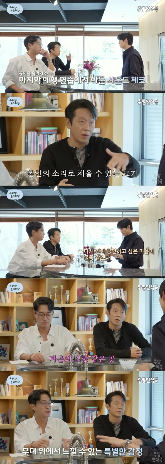 이에 유연석은 "다시 공연하고 싶은 마음이 굴뚝같겠다"라고 말했고, 박지환은 "고향 같은 곳이다. 무대에 서보면 안다. 무대의 에너지는 정말 다르다"라고 호응했다.