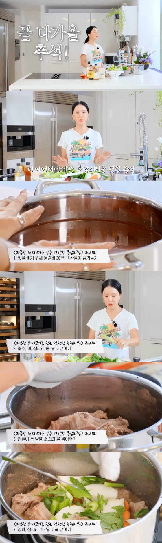 양념 소스에는 간 양파 1개, 저당 간장 5~6큰술, 알룰로스, 마늘, 후추, 참기름을 듬뿍 넣어줬다. 이후 삶은 등갈비를 자른 뒤 미리 만든 양념 소스, 물, 양파, 당근, 파, 샐러리 등 채소를 넣고 푹 끓이면 완성이다.