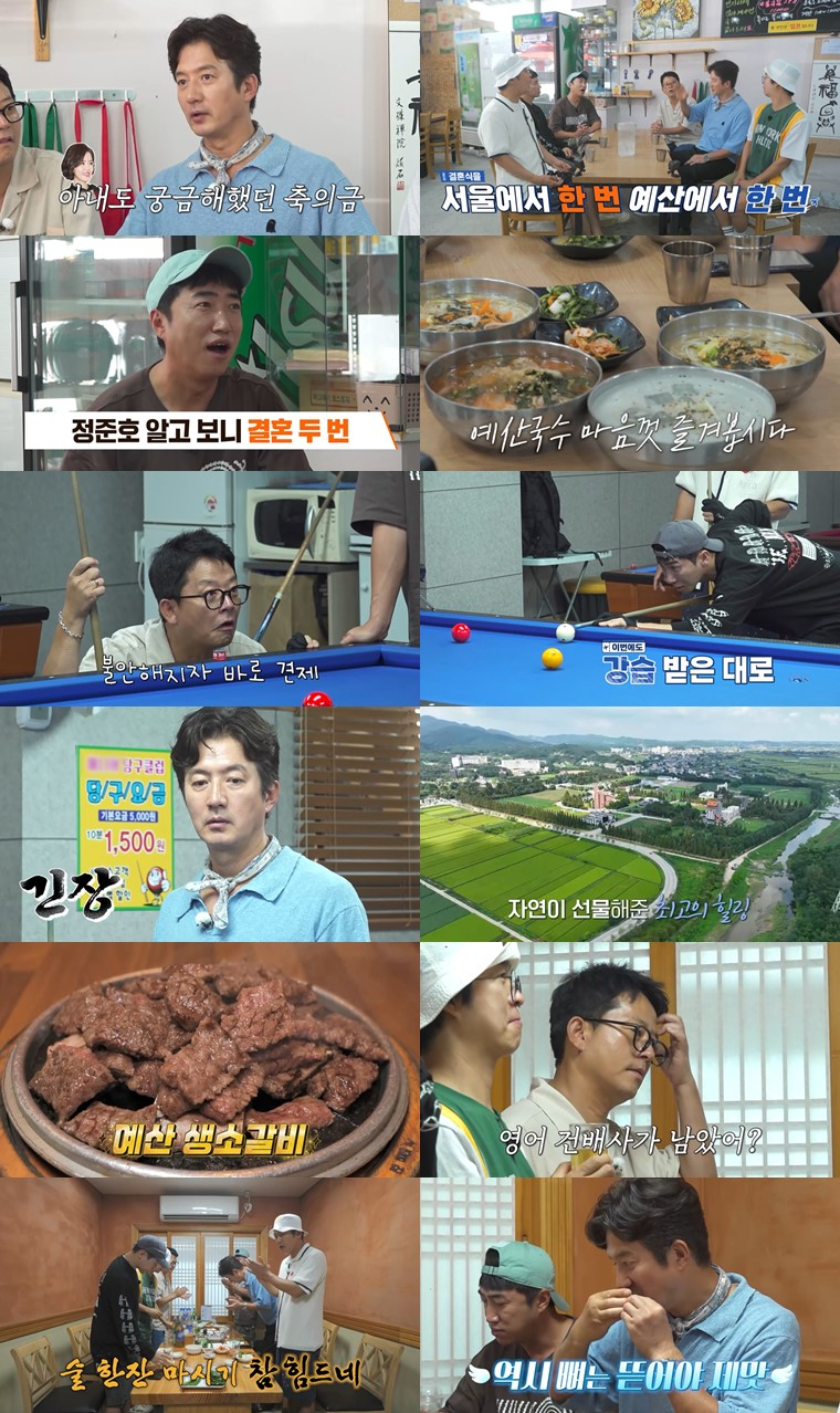 가장 먼저 간 곳은 '예산 5일장'이었다. 이곳에서 이날의 '여행 친구'인 정준호를 만난 '독박즈'는 "너무 잘생기셨다"며 극찬했다. 정준호는 '독박즈' 뿐 아니라 시장 시민들과도 일일이 악수를 하는 등 '악수왕' 포스를 풍겼고 이에 '독박즈'는 "벌써 선거 유세 하시냐?"면서도 정준호와 뻥튀기 등을 사먹으며 즐거운 시간을 보냈다. 이후 정준호의 단골 식당이자, '예산 8미(味)'인 예산국수를 먹으러 갔다. 이곳에서 멸치국수, 콩국수 등을 푸짐하게 주문한 이들은 식당 한 켠에 걸린 정준호와 아내 이하정의 사진을 보고는 "형님 결혼식이 궁금하다"고 '결혼 토크'를 시작했다.