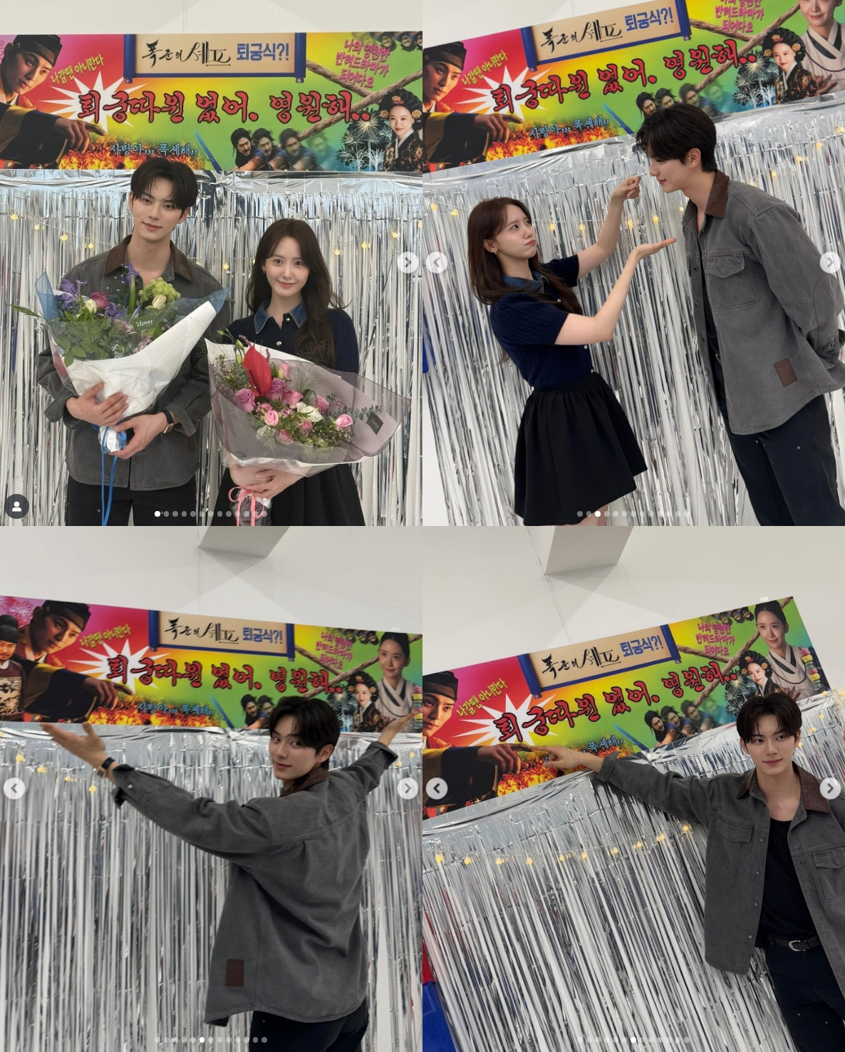 사진 속 이채민은 '폭군의 셰프 퇴궁식? 나갈 땐 아니란다. 나의 영원한 반려 드라마가 되어다오. 사랑아 폭셰해'라고 적힌 플래카드 앞에서 임윤아와 행복한 미소를 짓고 있는 모습. 두 사람은 전날 방영된 tvN '폭군의 셰프' 종영 스페셜 '퇴궁은 없어'를 끝으로 아름다운 마무리를 하게 됐다.