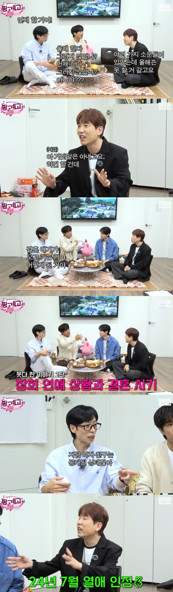차태현은 "올해 한다 그러지 않았나?' 언제 한다 그러지 않았나?"라고 되물었고, 남창희는 "여러 가지 소문들이 있었는데 올해는 못 할 거 같다"라고 말했다.