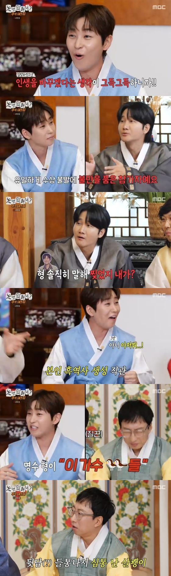 그는 "어떻게 된 거냐면 무대 끝나고 기분 좋게 가고 있었는데 명수 형한테 전화했다. 명수 형이 '상을 가수들에게 몰아줄 거면 왜 하냐'라고 하시더라. 저도 그 말을 들으니까 갑자기"라고 해명했다.