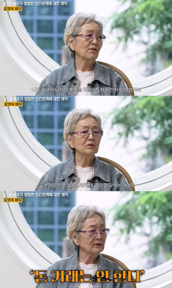 이날 김영옥은 인간관계에 대해 "'불편한 친구는 그냥 안 보면 되지' 그런 생각은 하지만 젊어서부터 이렇게 살아오는데 정신적으로 좀 문제가 있어서 이상하게 구는 친구도 있다. 젊은이들도"라며 "그거를 배척하고 안 보고 이래야지 그러지도 않고 살아왔지만 지금 오히려 달래줄 수 있고 이해해줄 수 있다. 다 자르고 그러는 사는 인생은 아니라고 본다"고 말했다.