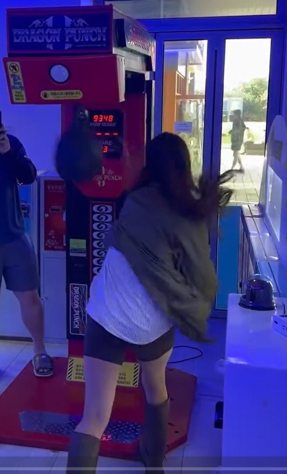 또한 이시영은 오락실에서 펀치 게임을 즐긴 영상도 공유했다. 이시영은 '만삭'의 몸에도 불구하고 최고 점수 '9348점'에 육박하는 '9251점'이라는 높은 점수를 내 놀라움을 자아냈다. 실제로 이시영은 과거 '복싱선수'로 활동했던 이력이 있는데, 여전한 괴력을 발휘해 감탄을 더했다.