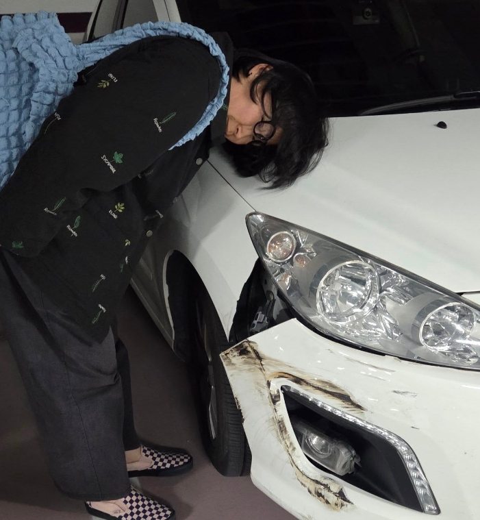 사진에는 범퍼 부위가 사고로 파손된 정은표 아내 차량의 모습이 담겨 있다. 정은표는 "보험사에 전화해서 피해자 측 차량 사고 접수하고 우리 차는 어떠냐고 물어보니 살짝 긁혔는데 잘 모르겠다고 한다"며 "공연 마치고 집에 와서 차를 살펴봤는데 우리 차도 보험처리해야겠다"고 전했다.