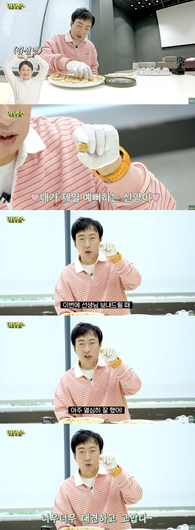 배우이자 방송인 박명수가 후배 김신영에게 진심 어린 영상편지를 전하며 훈훈함을 안겼다.24일 유튜브 채널 '할명수'에는 "(ENG) 칸쵸깡은 핑계고 칸쵸 2000개 까서 보고 싶은 친구들에게 연락했습니다 | 할명수 ep.259"라는 제목의 영상이 공개됐다.
