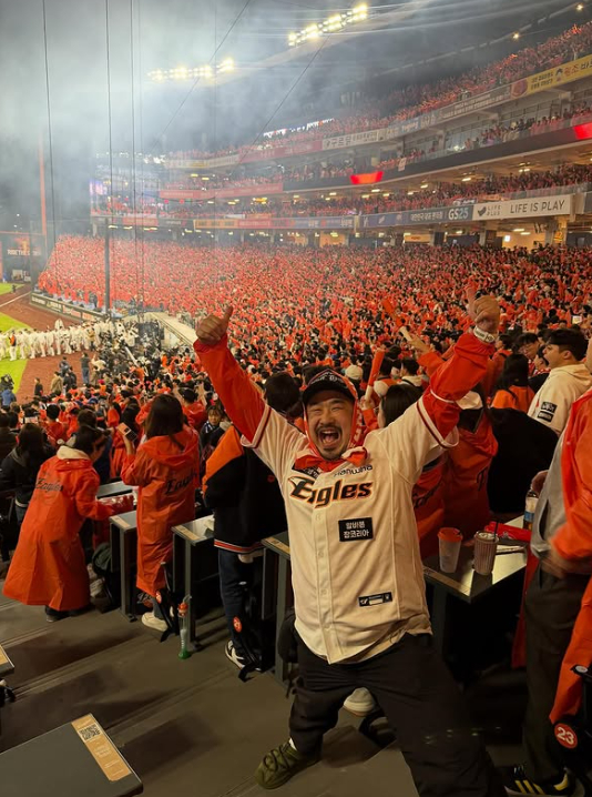 한화 이글스의 열렬한 팬으로 알려진 코미디언 강재준은 직접 직관 간 현장을 공개하며 "실시간 8회 말 문현빈 투런 10대 2. 4번 정도 움"이라고 전했다. 이어 "내 인생 최고의 승요 경기"라며 만세를 부르고 있는 사진을 공개하고, 기쁜 마음을 감추지 못했다.