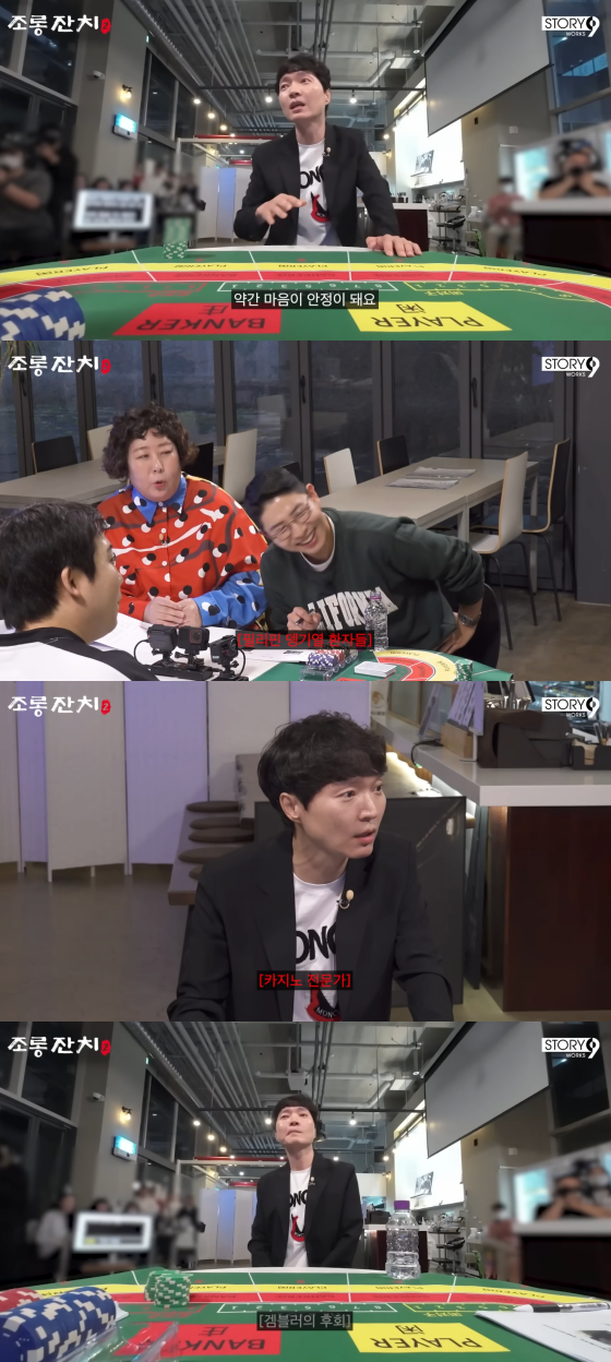 이날 유튜브 제작진은 테이블에 녹색 카지노 매트를 깔고 신정환을 기다렸다. 뒤늦게 이를 본 신정환은 "녹색만 보면 마음이 편하다. 손이 근질근질하다"고 자폭했다.