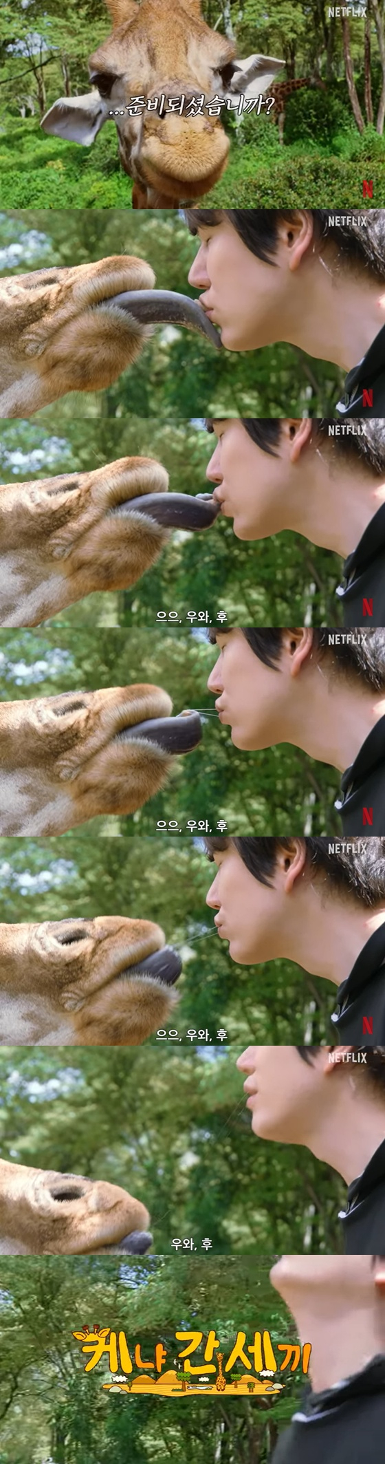 그룹 슈퍼주니어 멤버 규현이 기린과 '키스'를 하는 충격적인 비주얼을 선보여 화제다.27일 넷플릭스 코리아 공식 유튜브 채널엔 나영석 PD의 새 예능 '케냐 간 세끼' 티저 예고편이 공개됐다.