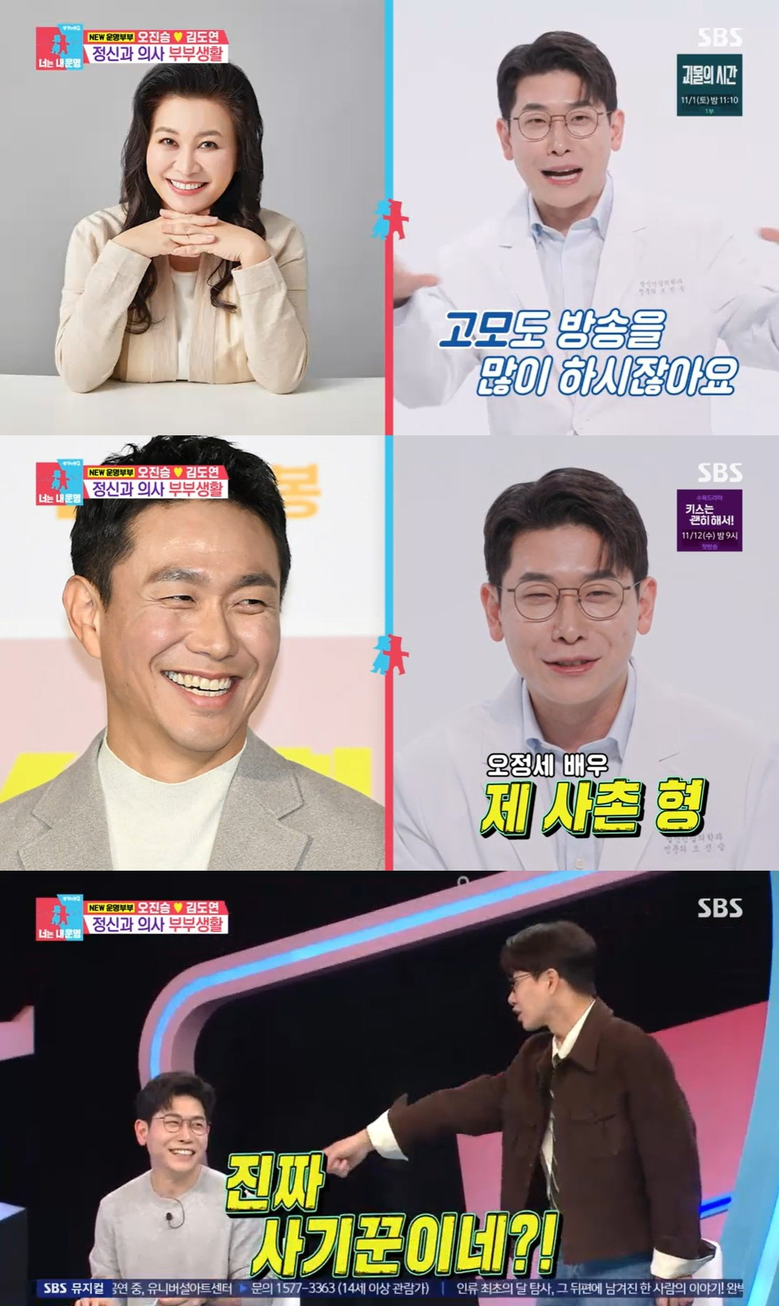 평소 절친하다고 말한 딘딘은 "난 진짜 몰랐다"라고 놀라워했고, 김구라는 "진짜 스타가 되고 싶나 보다"라고 놀렸다. 서장훈은 "결혼식에 두 분 다 오셨냐"라고 묻자, 오진승은 "정세 형만 왔다"라고 답했다. 하지만 오진승의 아내 김도연은 "목적 없는 거짓말을 많이 한다. 유명인들과 친하다는 거짓말도 한다. 오정세, 오은영 혈연도 아니다"라고 말해 충격을 안겼다. 오진승도 "사실 거짓말이었다"라고 털어놨다.