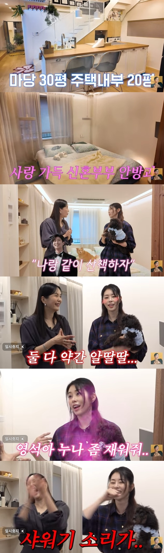 마당까지 딸린 널찍한 공간에 장영란이 "100평 정도 되냐"며 놀라워하자 서동주는 "집은 20평밖에 안 된다. 마당이 30평이다. 원래 1층 집 구옥이었고 2층은 막혀있었다. 천장과 벽을 굴려서 넓어 보이는 효과를 냈다"라고 설명했다.