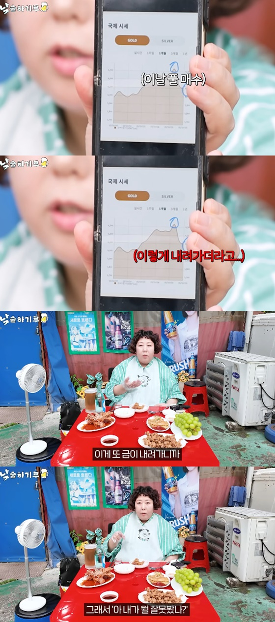 신기루는 "그런데 다음날 이렇게 내려가더라"라며 "내가 잘못봤나? 아니면 나라에 전 세계에 무슨 일이 있나? 어디서 금이 터졌나 별생각을 다 했는데 그럴수록 또 사야 하거든. 내가 할 수 있는 풀매수를 했는데 야단났다"고 밝혔다.