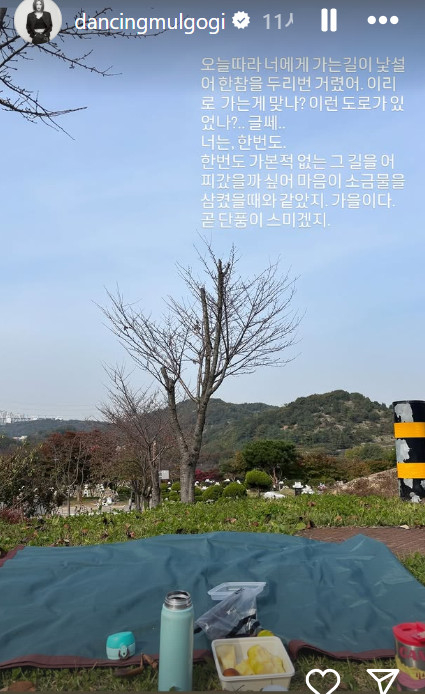 특히 이윤지는 박지선 납골당 사진과 함께 "아침에 아이들 등교, 등원 완료 후 부리나케 떠난 가을 소풍"이라는 메시지를 남겨 먹먹함을 더했다.