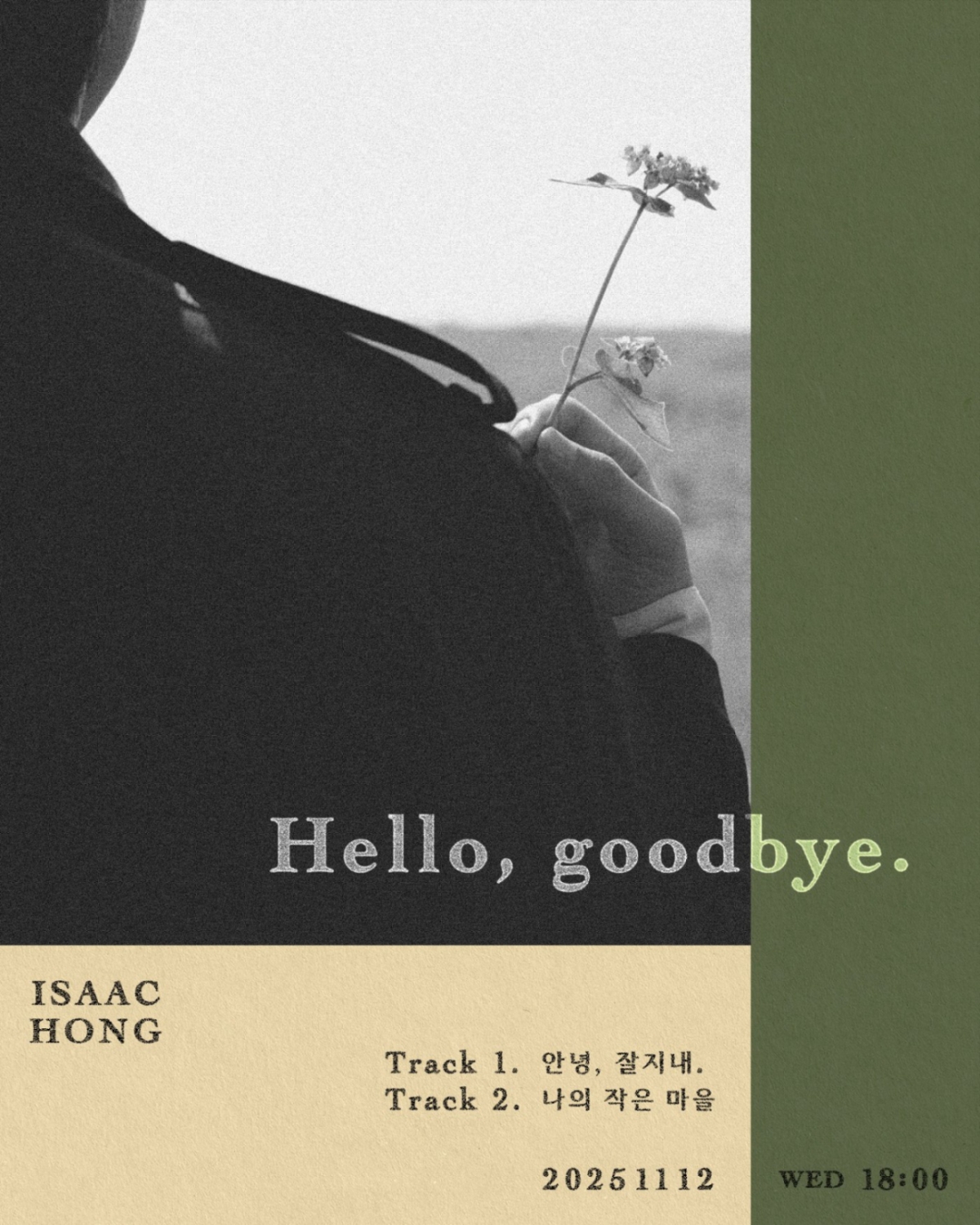 최근 공개된 티저 이미지에서 메밀꽃을 들고 있는 홍이삭의 뒷모습은 팬들의 궁금증을 불러일으킴과 동시에 이번 앨범의 감성적인 모습을 보여준다. 트랙리스트에 따르면, 새 싱글에는 '안녕, 잘 지내.(Hello, goodbye.)'와 나의 작은 마을(My little town)' 총 2곡이 수록됐다.
