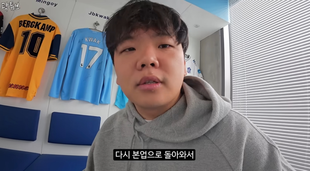 곽튜브는 "지금 이제 결혼식 일정 이런 것들이 다 끝나고, 다시 이제 본업으로 돌아왔다. 이제 유부남으로 돌아왔다"며 "이제 좀 더 본업을 더 열심히 해야 되기 때문에 사무실에 돌아왔다"고 말했다.