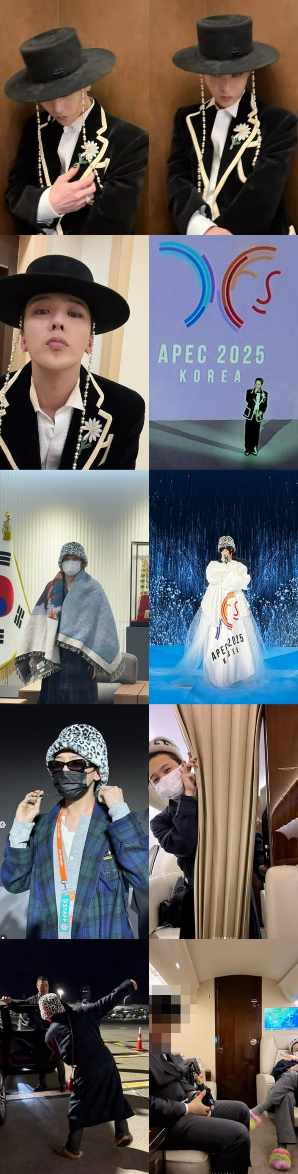 지드래곤은 지난 10월 31일과 11월 1일에 걸쳐 자신의 SNS에 "일 년 만의 파워", "APEC 2025 KOREA"라며 사진을 다수 올렸다.