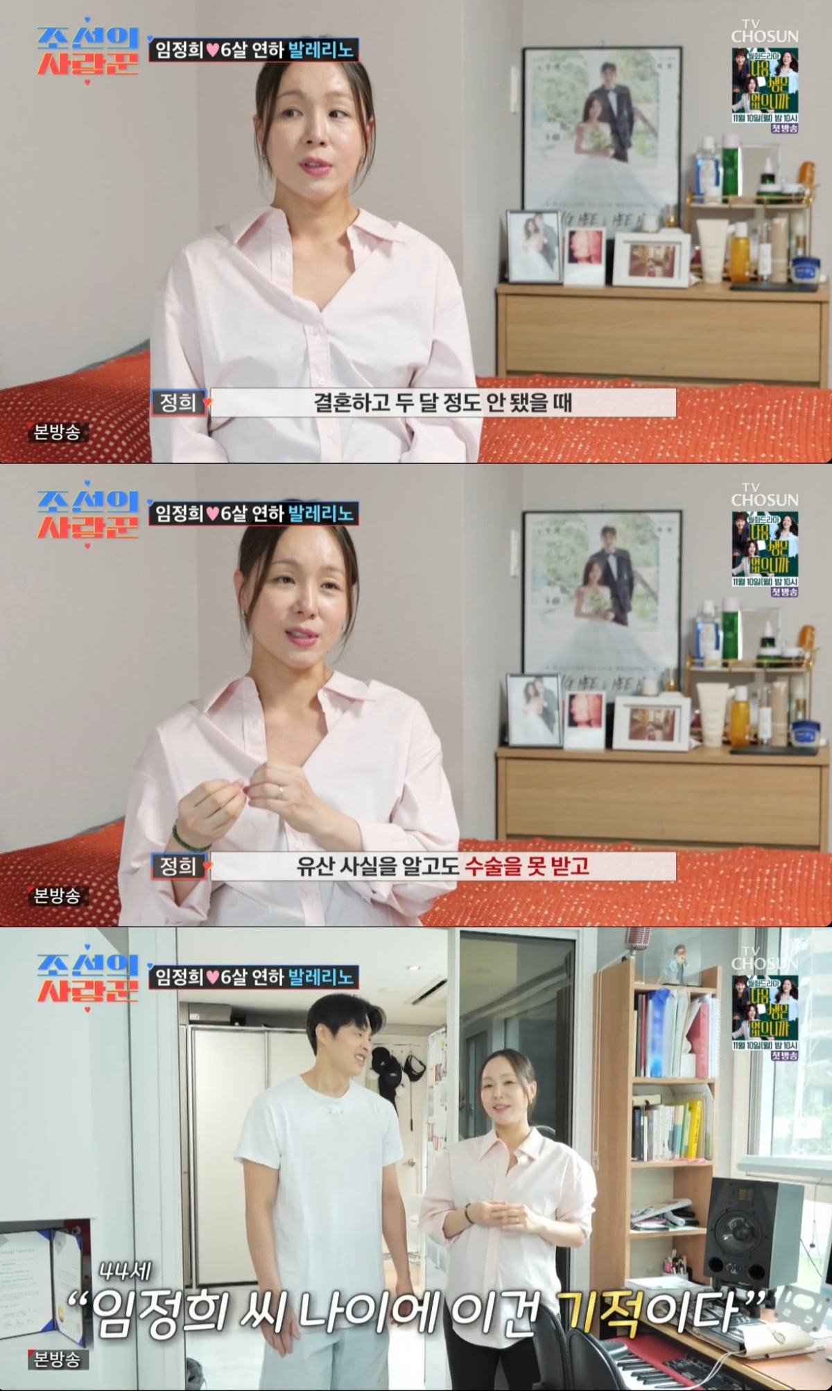 '조선의 사랑꾼' 가수 임정희가 임신 소감을 밝혔다. 3일 방송된 TV조선 예능프로그램 '조선의 사랑꾼'에는 임정희 부부가 출연했다.