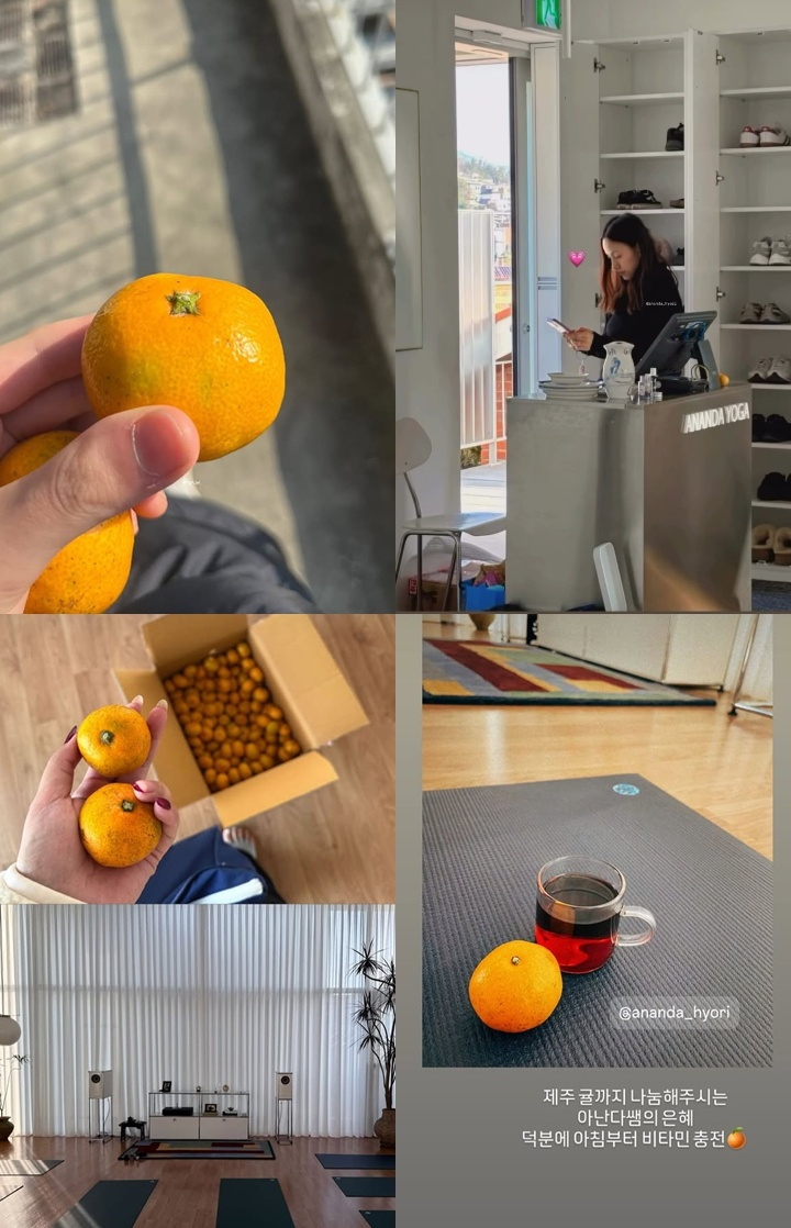 이날 수강생들은 이효리에게 귤을 나눠 받았다며 고마워하는 반응을 보였다. 한 수강생은 "제주 귤까지 나눔해 주시는 아난다 쌤의 은혜. 덕붙에 아침부터 비타민 충전"이라며 아난다 요가에서 차와 함께 귤을 즐기는 모습을 전했다.