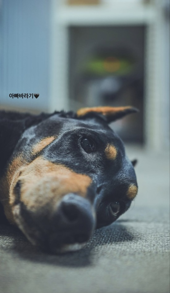 7일 배정남은 SNS에 "아빠바라기♥"라며 세상을 떠난 반려견 벨의 생전 사진을 게재했다.