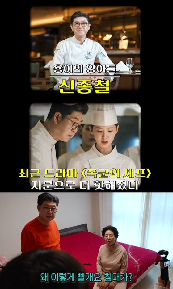 알고 보니 그의 양아들은 평소 즐겨 찾는 호텔 더킹스의 총주방장 신종철이었다. 특히 그는 최근 인기리에 종영한 드라마 tvN '폭군의 셰프' 자문 셰프로 알려지면서 화제가 된 바 있다.이후 신종철 셰프의 집이 공개되기도 했다. 그는 "여기는 26평이다"라며 "식기가 6세트다. 여자친구 생기면 여자친구, 제주 엄마(친엄마), 용여 엄마, 우리 동생 것이다"라고 했다.