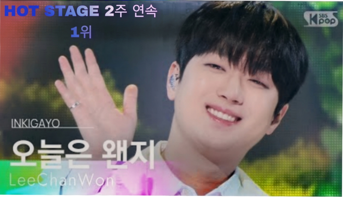 가수 이찬원이 SBS '인기가요' 핫스테이지에서 2주 연속 1위에 오르며 인기를 빛냈다.이찬원은 11월 12일 공식 소셜 미디어를 통해 두 번째 정규 앨범 '찬란(燦爛)' 타이틀곡 '오늘은 왠지'로 '인기가요' 핫스테이지 1288회 1위 수상 소감과 트로피 인증 사진을 공개했다.