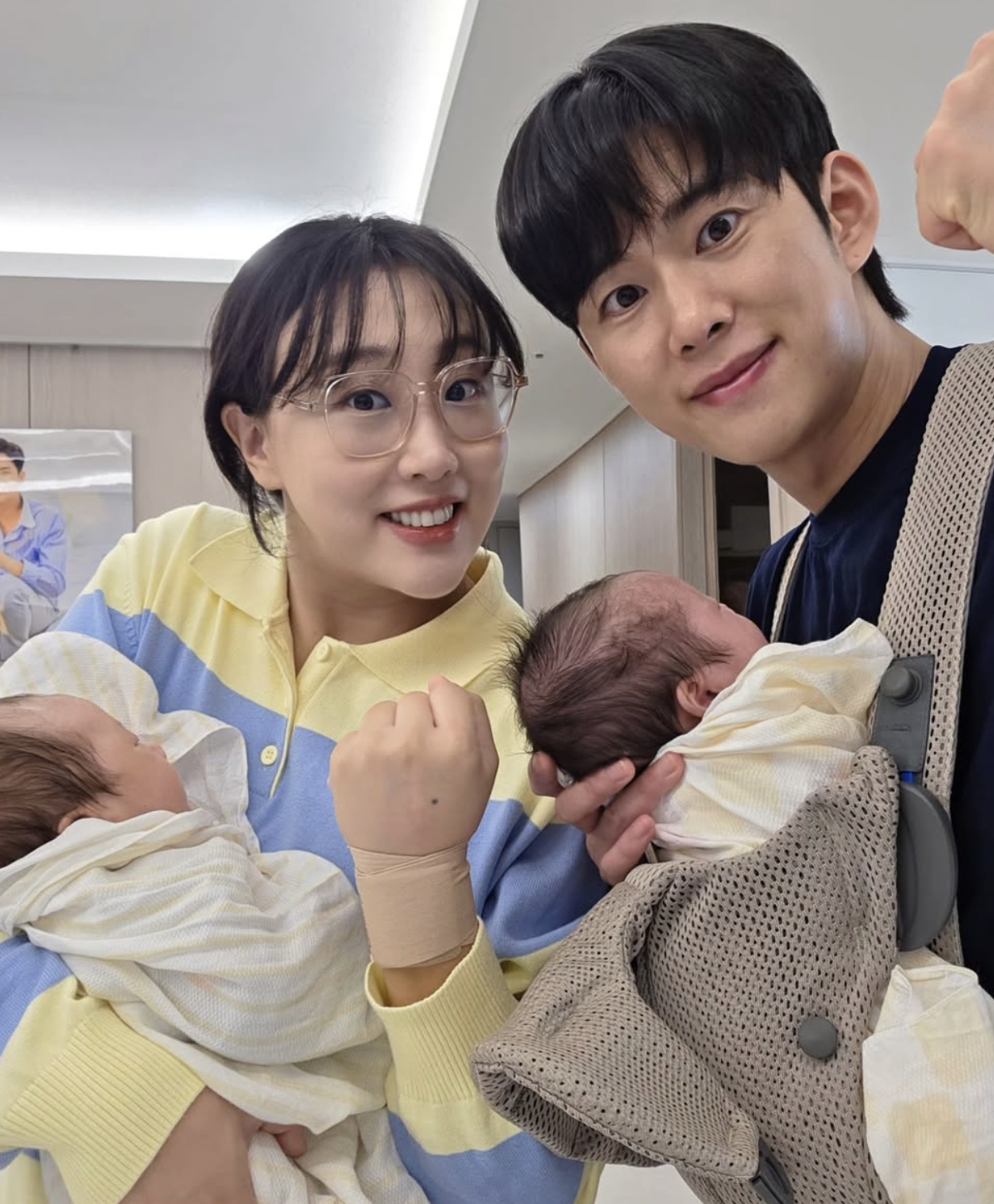 영상 속 라키와 뚜키는 산후조리원에서 엄마, 아빠의 팔에 안겨 다양한 표정을 지어 보이고 있다. 아직 갓 태어난 신생아이지만 또렷한 이목구비와 각자의 분위기가 드러나며 시선을 사로잡았다.