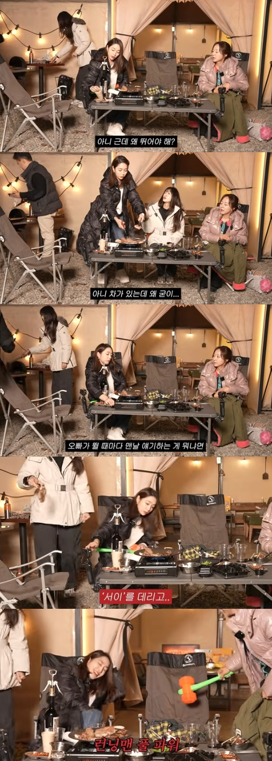 캠핑장에 도착한 이들은 제작진의 요청에 따라 자녀 이야기를 꺼내면 뿅망치를 맞는 게임을 진행했다.