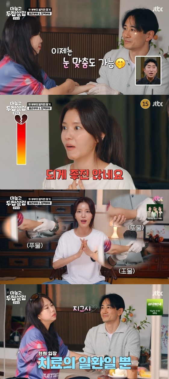 그러나 백도빈은 "손목을 가볍게 풀어드린 거라 제 생각엔 질투가 아니지 않았을까 싶다"라며 지속적으로 홍현희의 손목을 주물렀다. 이에 정시아는 "눈치가 없다"라고 팩폭을 던져 웃음을 자아냈다.