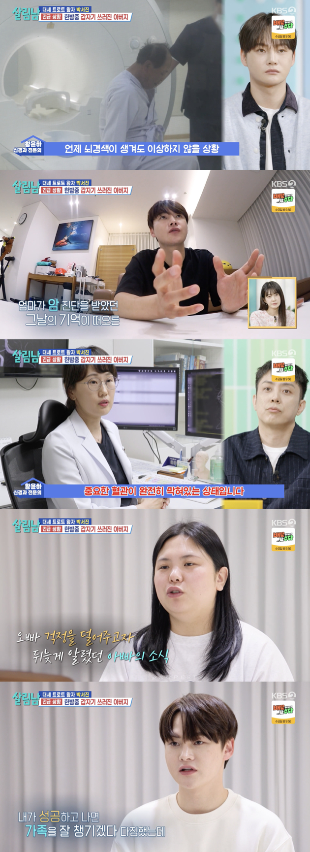 이날 박서진은 제작진에게 급히 메시지를 보내 아버지가 밤중에 화장실에 가던 중 극심한 어지럼증을 호소하며 쓰러졌다는 소식을 전달했다.