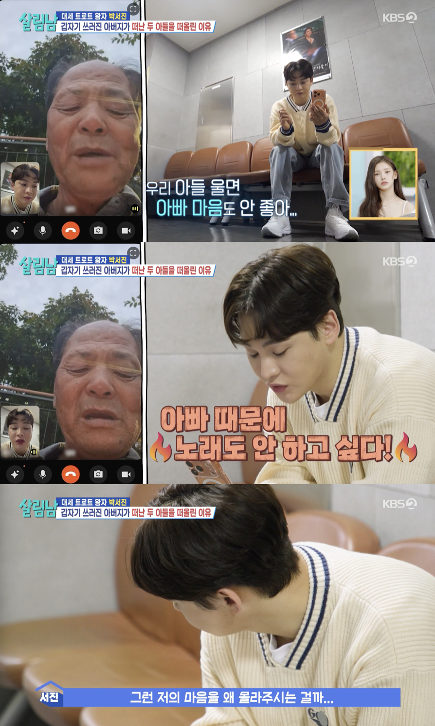 가수 박서진이 아버지가 갑자기 떠난 두 형을 언급하자 끝내 눈물을 흘렸다.22일 방송된 KBS 2TV '살림하는 남자들 시즌2'에서는 박서진 아버지의 뇌 건강 이상으로 인한 긴급 상황이 공개됐다.