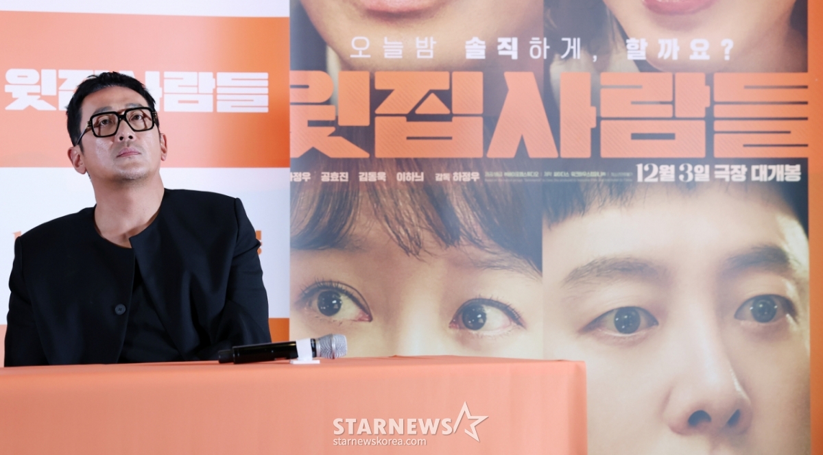 하정우는 '윗집 사람들'로 4번째 연출작을 관객 앞에 내놓게 됐다. 그는 "연출자로서의 여정인 것 같다. 앞으로 얼마큼의 기회를 받게 될지는 모르겠지만, 한 작품을 끝내고 관객들을 만나고, 결과를 받아들이고, 저 역시도 그걸 통해서 깨닫고 배우게 되는 부분이 있는 것 같다. 늘 진행형인 것 같다. 아주 조금씩 성장하고, 깨닫는 부분이 생겨나는 게 아닌가 싶다. 전작도, 지금도 최선을 다해서 스태프, 배우들과 협업했다"고 밝혔다.
