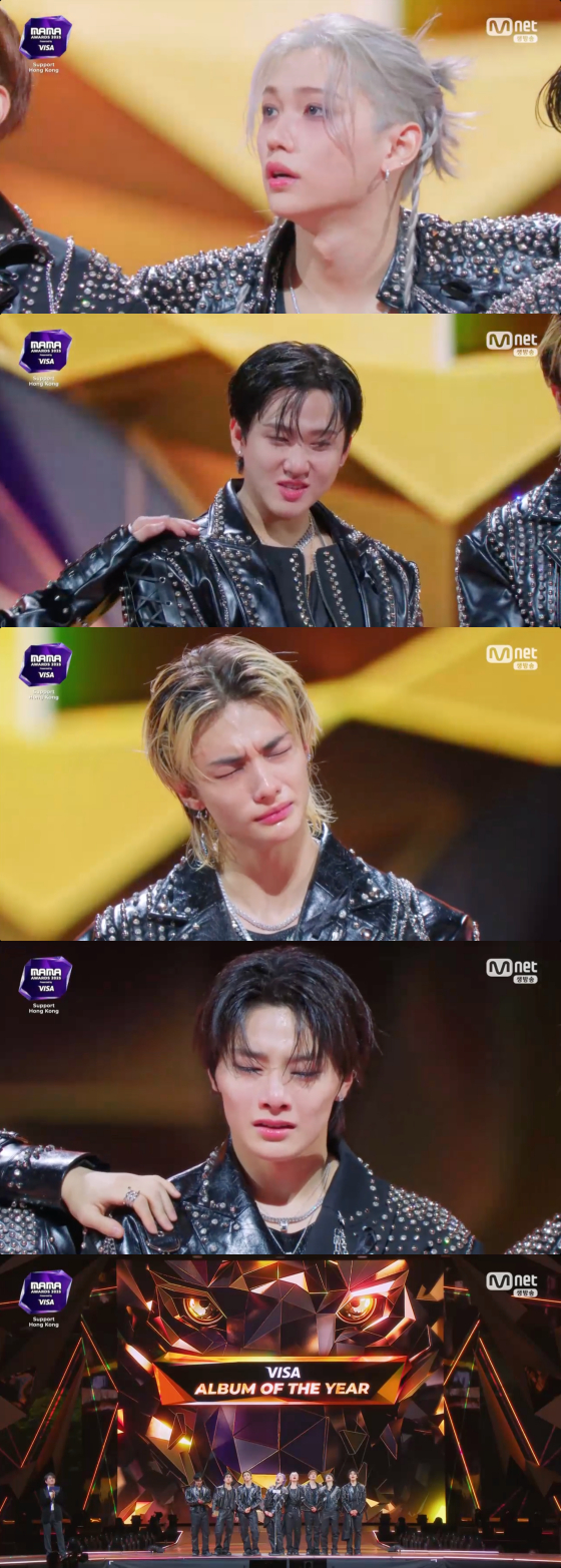 그룹 스트레이 키즈가 '2025 마마 어워즈'에서 대상 올해의 앨범상을 수상하며 오열했다.29일 오후 홍콩 카이탁 스타디움에서 '2025 마마 어워즈'(2025 MAMA AWARDS, 이하 '마마') 챕터 2가 개최됐다. 챕터 2는 배우 김혜수가 호스트로 나섰다.