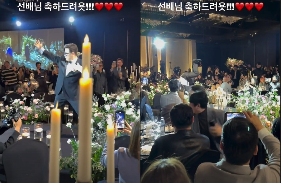 이어 후배 코미디언 김원효는 "유부남 윤정수. 형 이 단어 어색하지요? 축하해요"라고 신랑 입장 장면을 공개했고, 김지혜 또한 "정수 오빠 결혼식"이라며 윤정수와 원진서가 하객들에게 인사를 전하는 모습을 공개해 눈길을 끌었다.