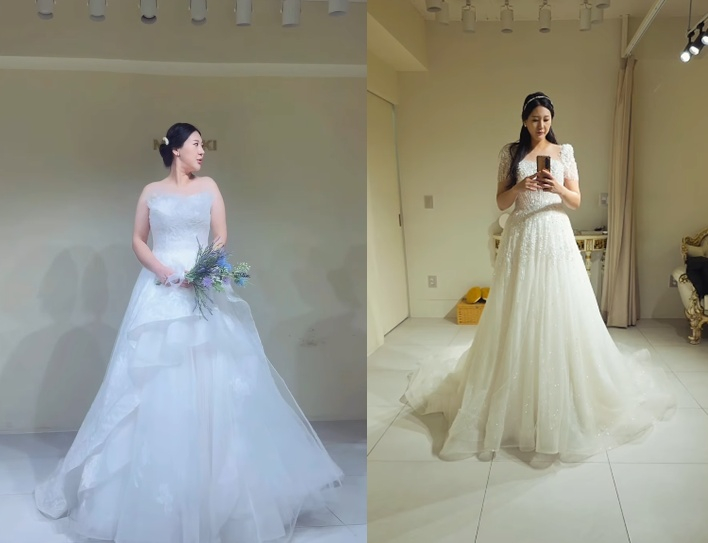 28기 정숙은 2일 "드디어 오늘 촬영 웨딩드레스를 보고 왔습니다"라며 여러 스타일의 웨딩드레스 룩을 공개했다.