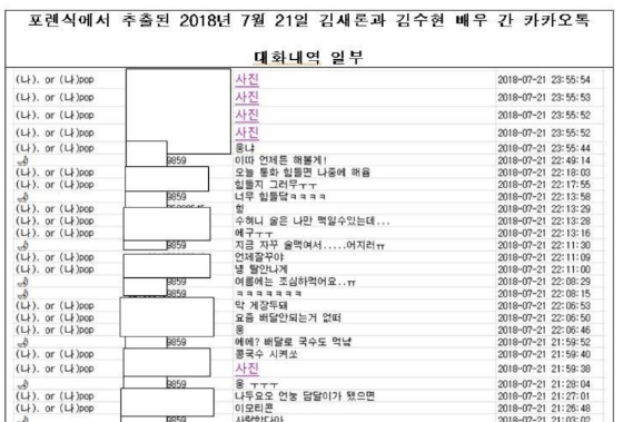 김새론 유족 측은 "김수현 법률대리인인 고상록 변호사가 지속해 유튜브 채널 등 SNS에 사건 관련 글을 올리고, 모 매체를 통해 인터뷰를 진행까지 해가며 또다시 조작 프레임을 씌우고 있다"며 "이에 부득이하게 유족 측 공식 입장을 말씀드림과 동시에 수사기관에 제출한 김새론과 김수현 간 카카오톡 대화내역 포렌식 자료를 공개한다"고 밝혔다.