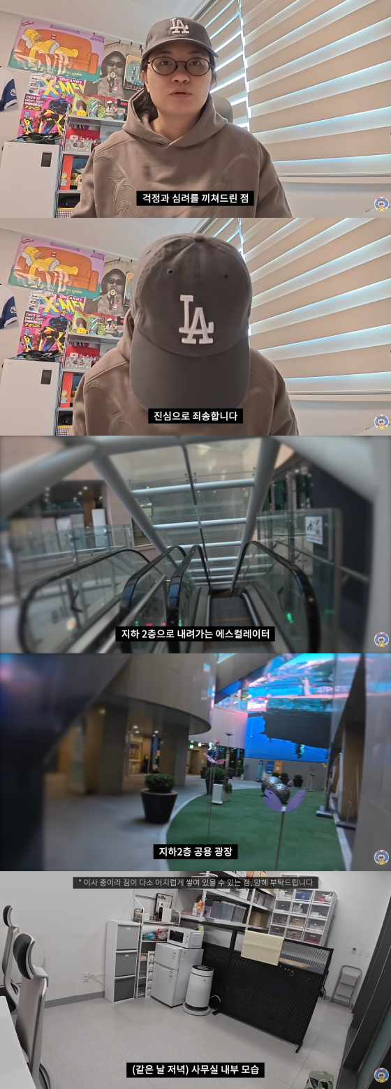 원지는 또 "궁금해 하는 분들도 있으신 것 같아서 (사무실 주변에 대해) 살짝 설명하겠다"며 논란이 된 사무실 주변 상권과 건물 내부를 촬영한 영상도 공개했다.